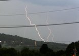 SANDYSTON - A bolt of lightning struck a wooden cabin at a 4-H camp in Sussex County this afternoon, slightly injuring two people who were inside the cabin, State Police said. The lightning, which occurred during a severe thunderstorm that pummeled northwestern New Jersey with heavy rain and hail, apparently hit a large pine tree, then traveled into the foundation of the cabin at the Lindley G.